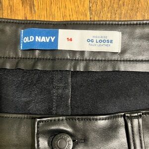 Chic faux leather trousers. High-rise, loose fit. Perfect for any occasion.