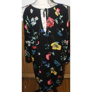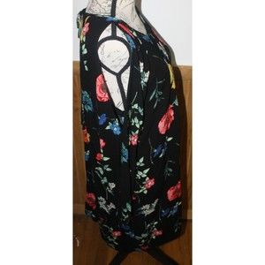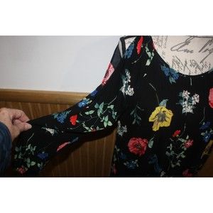 Old Navy Black Floral Cold Shoulder Dress with Pleated Bodice SzXL Keyhole