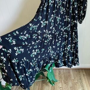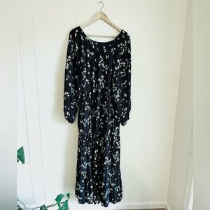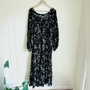 Old Navy Black Floral Square Neck Flowy Sleeve Button Front Maxi Dress Sz XXL Tall