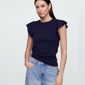 Brand new without tags. Ribbed tank top with ruffle sleeve detail. Please look at all pictures.