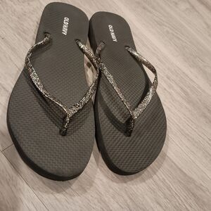 Step out in style with these Old Navy black glitter flip flops. Perfect for casual outings, they add a touch of sparkle to any outfit.