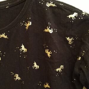 Old Navy Black Hi Lo Gold Unicorn Tee GIRLS size Medium 8 Long Sleeve