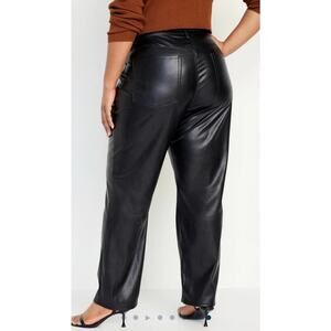 Old Navy Black High Rise OG Loose Leg Faux Leather Pants Size 16 NWT Wet Look