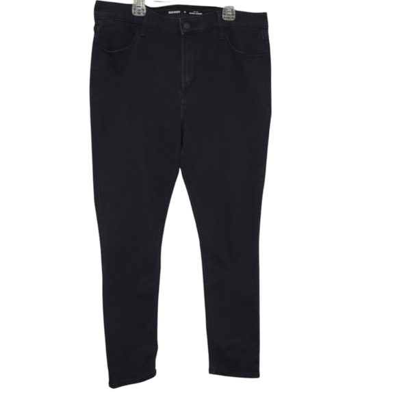 #Black wash #Skinny fit #High-rise #Denim w/stretch #Old Navy #Scoop pockets #Button and zip fly #Full length