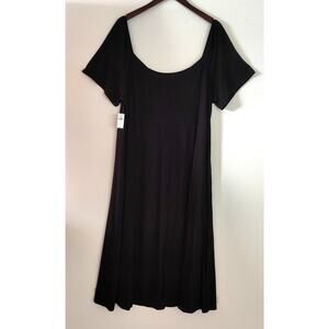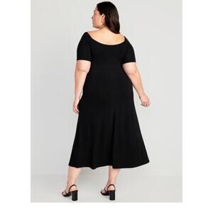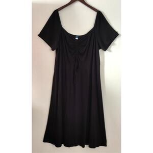 Old Navy Black Midi Dress Short Sleeve Sz 4X Jersey Knit Stretchy Ruched Sweetheart Neckline Casual Party Fit & Flare