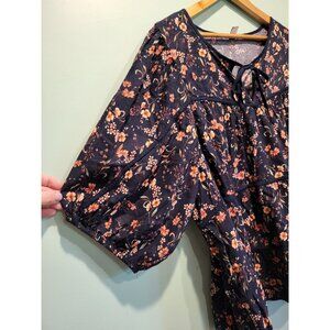 Old Navy Black Pink Floral Tie Neck Puff Sleeve Peasant Top Sz 3X