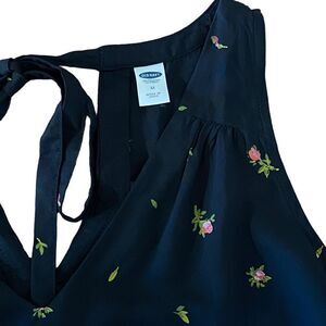 NWT Old navy black pink ombré floral tie back midi shift dress sleeveless.