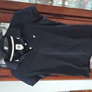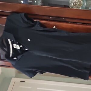 Classic black polo shirt. Features a small embroidered logo. Short sleeves and button-up collar.