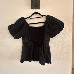 Old Navy Black Puff Sleeve Ruffled Blouse Empire Waist Size Large Minimalist Fun