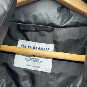 This Old Navy black puffer vest is a versatile addition to your wardrobe. Perfect for layering during the cooler months, this sleeveless vest features a convenient zip-up front. The classic black color makes it easy to pair with a variety of outfits.