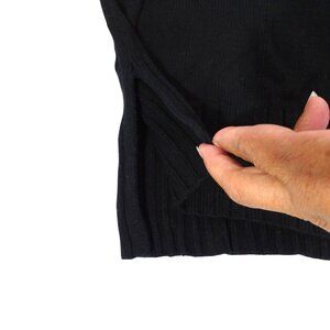 Old Navy Black Ribbed Trim V-Neck Sweater Women Size M Long Sleeve Side Slit
