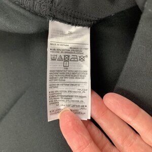New with tag, crisp black stretch canvas pant has no defects. 2 functional pockets, wide hidden stretch waistband, wide legs. Size 3X, please reference measurements for sizing & fit inquiries.