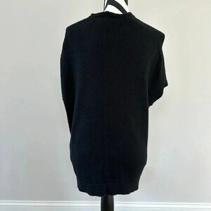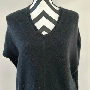 Oversized black sweater. It is sleeveless but would make a great top for layering. One of the photos makes the sweater look faded however it is not. You can definitely tell that it is worn but it still has a lot of life in it.