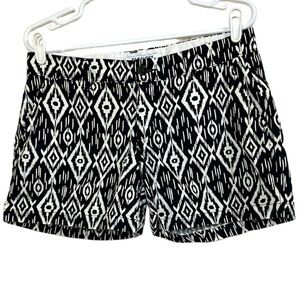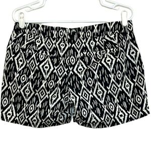 Old Navy Black White Ikat Print Shorts 6 Cotton Cuffed Summer Casual Boho