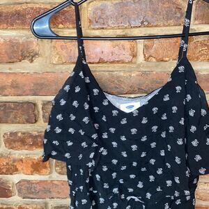 Old Navy Black White Printed Sleeveless Tiered Tunic Tank Top Women's Size Medium