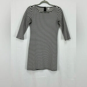 Old Navy Black White Striped 3/4 Sleeve T Shirt Dress Size Small Zip Closure