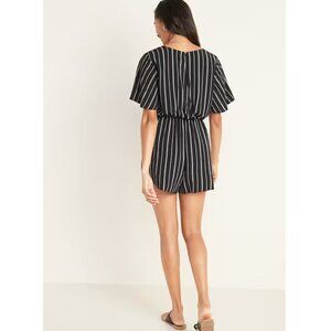 Old Navy Women's Black White Striped Light Weight Keyhole Back V-Neck Flutter Sleeve Romper