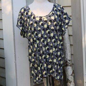 Old Navy Black Yellow Leaf Print Cotton Modal Blend Short Sleeve Tee Sz XL