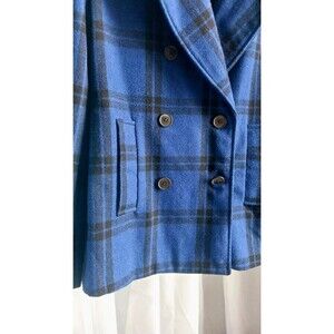 Old Navy Black and Blue Plaid Recycled Wool Blend Pea Coat Size L