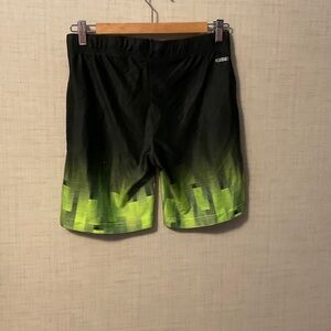 Vibrant kids shorts with a bold black and neon green pattern. Ideal for play and casual wear.