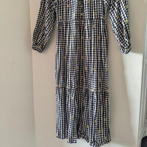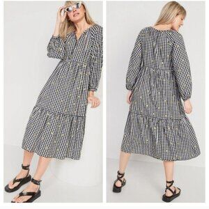 Old Navy Black and White Gingham Plaid Checkered Long Sleeve Maxi Dress