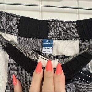 Experience ultimate comfort with these Old Navy jogger sweatpants, featuring a bold black and white buffalo check pattern. Designed with a tapered leg and elastic cuffs, they offer a relaxed fit perfect for lounging or casual outings. The soft material and elastic waistband ensure a cozy and stylish wear.