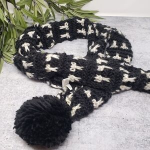 Old Navy | Black and White Knit Pom Pom Scarf.