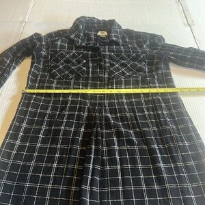 Old Navy Black and White Plaid Long Shirt dress w 3/4 length sleeves open sides