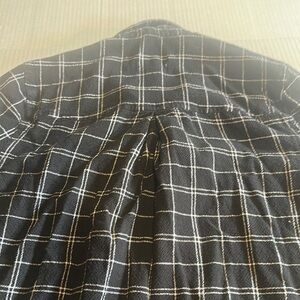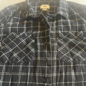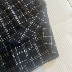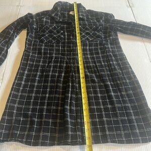 EUC Stylish black and white plaid long shirt. Perfect for layering.buttons part way down and 2 pockets . Very minor wear.