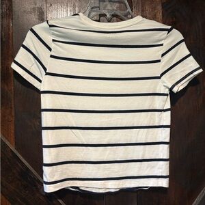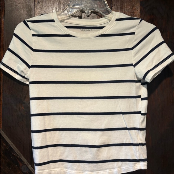 These Old Navy tees feature a classic black and white stripe pattern, offering a versatile and timeless look. Made from a comfortable knit fabric, they are perfect for casual wear with their relaxed fit and crew neck design.