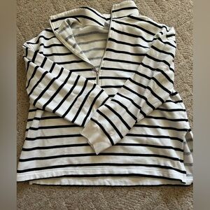 Cozy black and white striped 3/4 zip cropped shirt. It’s not necessarily designed in a crop style but it fits really short. Sz L. Smoke free pet friendly home.