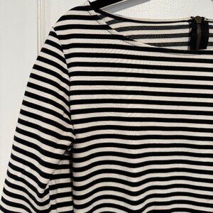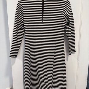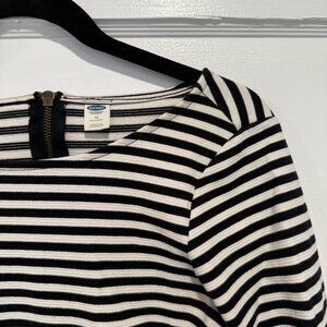 Old Navy Black and White striped dress. Mid-thigh length. Three-quarter length sleeves. Zip back.