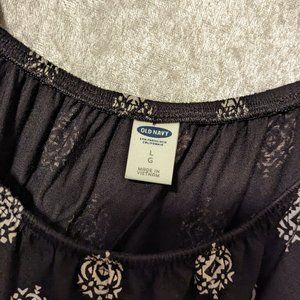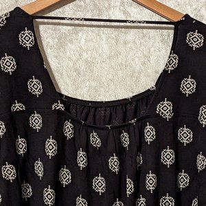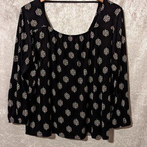 Old Navy Black with White Design Peasant Sleeve Blouse Size L