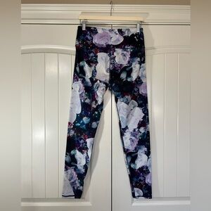 Old Navy Black/Lavender/White Floral Active Go Dry Leggings. Size Large.