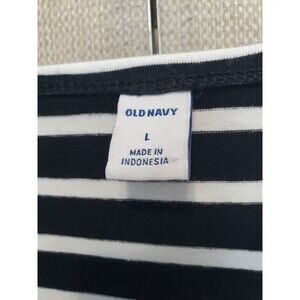 This is a Old Navy Black/White Striped Jersey Knit Scoop Neck Fit & Flare Dress Large NWT