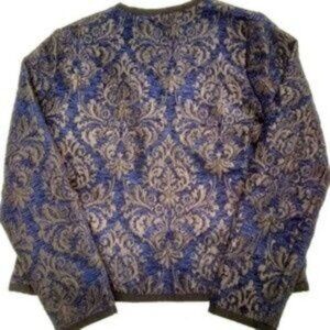 Old Navy Blazer Jacket Damask Pattern Blue Black Unlined Open Front Size Small