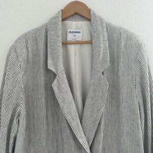 Old Navy Blazer Womens 2XL Black White Linen Blend Striped Double Breasted Jacket