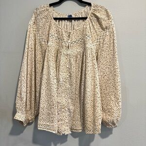 Old Navy Blouse Button Up Peasant Cottagecore Ditsy Floral Long Sleeve XXL