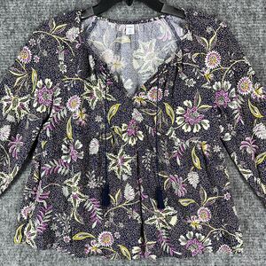 Old Navy Blouse Womens Extra Small Navy Basic Shirt Festival BOHO Floral Hippie