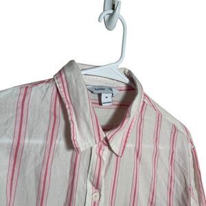 Old Navy Blouse Women's Medium The Cropped Shirt Pink Striped Collared Top