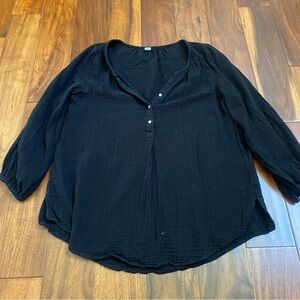 Old Navy Blouse Womens Small Black Flowy Half Button Long Sleeve Shirt Knit Top