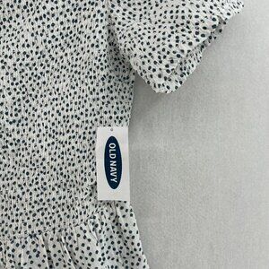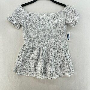 Old Navy Blouse Women's XS White Black Smocked Polka Dot Off the Shoulder Peplum