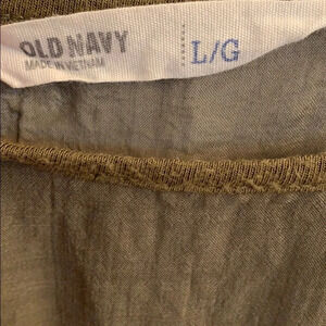 Olive green color blouse. Sheer across the shoulders for a sassy look. Will be great for a front tuck with jeans or pair with a skirt for a business casual look.