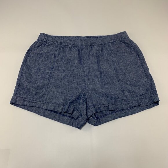 Old Navy Blue Chambray Linen Blend High Rise Pull On Shorts L