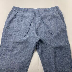 Old Navy Blue Chambray Linen Blend Tapered Straight Leg Pant XL