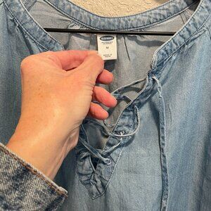 Excellent condition lightweight laced front flutter sleeve mid length shift style blue chambray dress from Old Navy. Size medium, relaxed fit. Casual and perfect for spring, summer, and into fall!