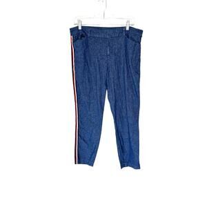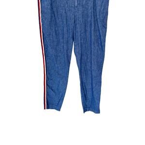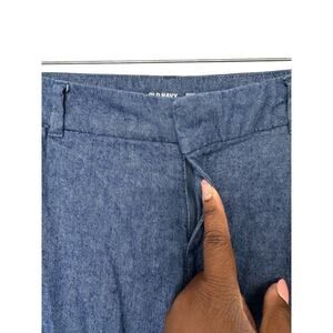 Old Navy Blue Denim Linen Blend Mid-Rise Side-Stripe Ankle Dress Pants Size 12