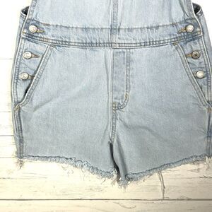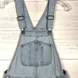 Old Navy Womens Sz Small Light Wash Blue Denim Shortalls Bib Overall Cuffed Shorts VTG 100% Cotton no stretch. Waist measures 15”across, inseam 3”. There is a pen mark on inside near tag but overall Nice shape