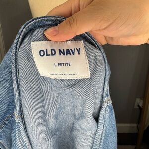 Stylish blue denim vest. Features button closure. Perfect for layering.