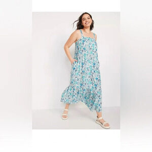 Embrace effortless elegance with this stunning Old Navy blue floral maxi swing dress. Featuring a sleeveless design and a stylish tie-back with a cut-out detail, this dress is perfect for warm weather and special occasions. The swing silhouette offers a relaxed yet flattering fit, while the elastic chest ensures comfort. Brand new and never worn, this dress is ready to become your go-to for the season.